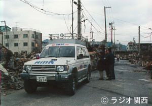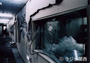 1995年の阪神・淡路大震災によって、当時は須磨にあったラジオ関西の社屋も全壊しました。5時46分の地震発生時に、一時放送が中断しましたが、6時には再開。倒壊の恐れがある中を69時間、報道し続けました。