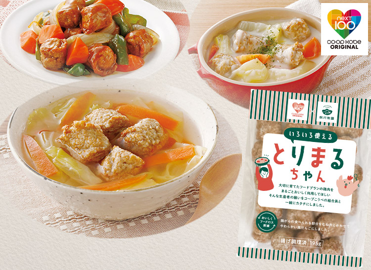3. こうして完成したのが、「とりまるちゃん」。「大切に育てた鶏を、無駄なくおいしく食べてもらいたい」という生産者と組合員の思いが一つになった商品です
