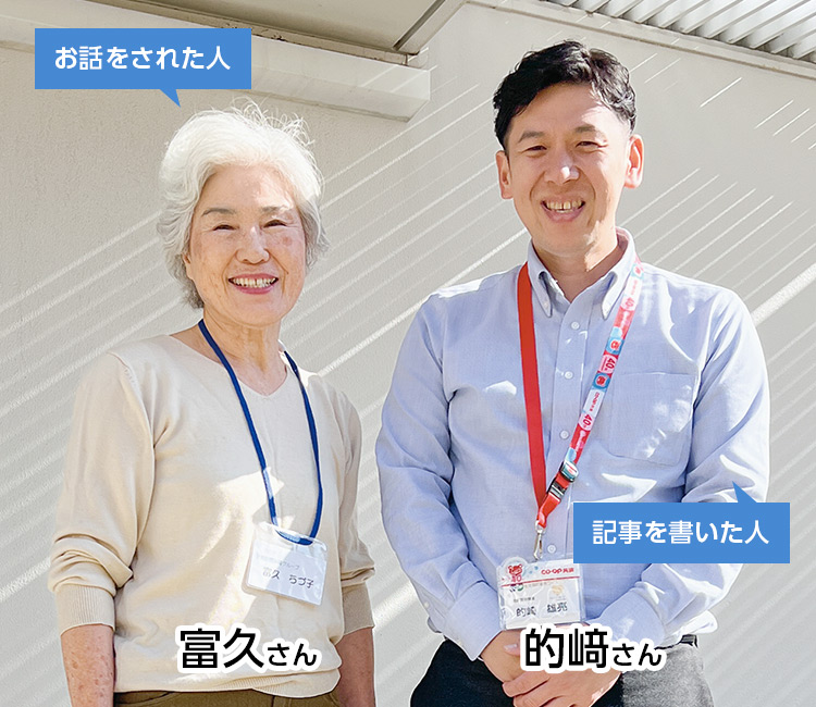 私が話を聞いたのは、コープサークル「友愛訪問水曜グループ」で居場所づくり活動を続けている富久さんです。定期的に活動することで安否確認になるし、人と人とのつながりが気持ちを前向きにさせると感じました。記事には書き切れなかったんですけど、当時コープこうべのボランティアセンターができ、活動の支えになったと聞きました。