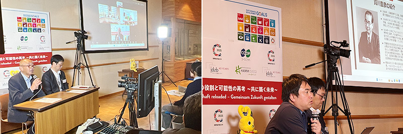 両国の専門家としてハイデルベルク大学のクライン教授からドイツの協同組合の礎を築いたライファイゼンの思想や活動について、関西学院大学の柴田学准教授からは賀川豊彦と協同組合について講演いただいた。